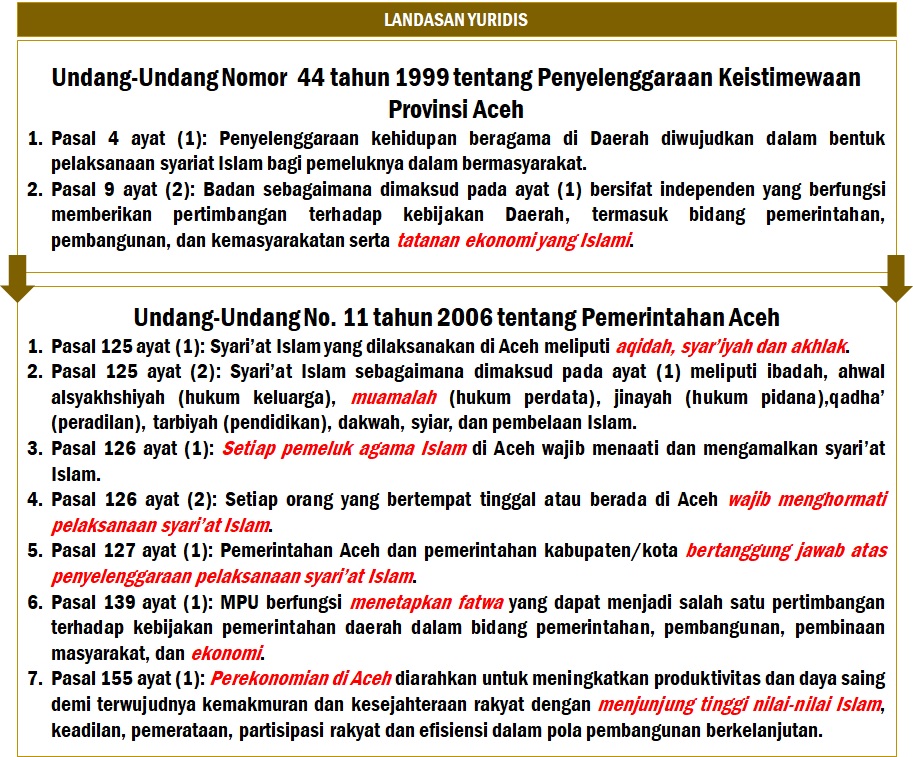 Berikut alur pikir yang diawali dari UU No. 44 tahun 1999 tentang Penyelenggaraan Keistimewaan Provinsi Aceh, hingga terbitnya Qanun Lembaga Keuangan Syariah: